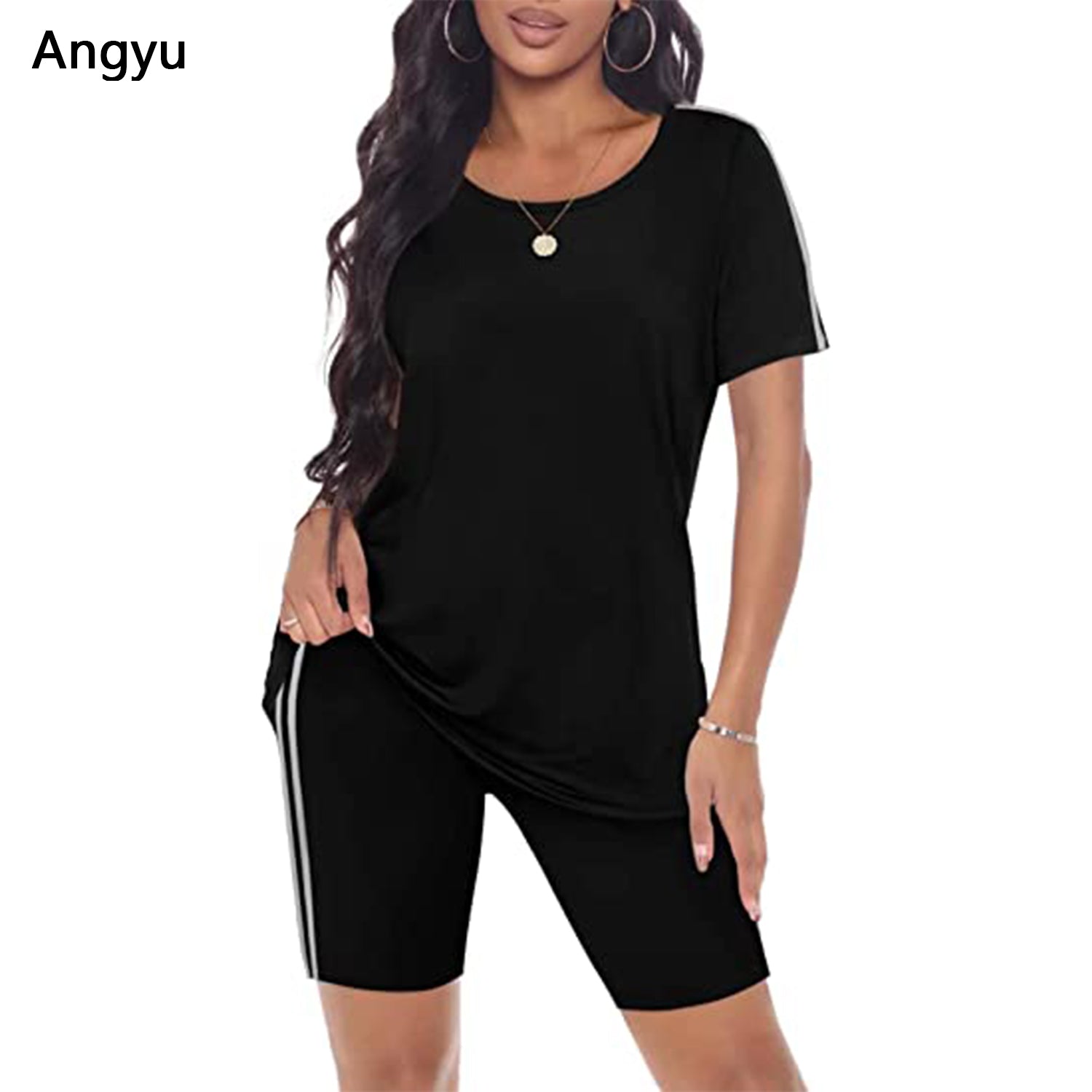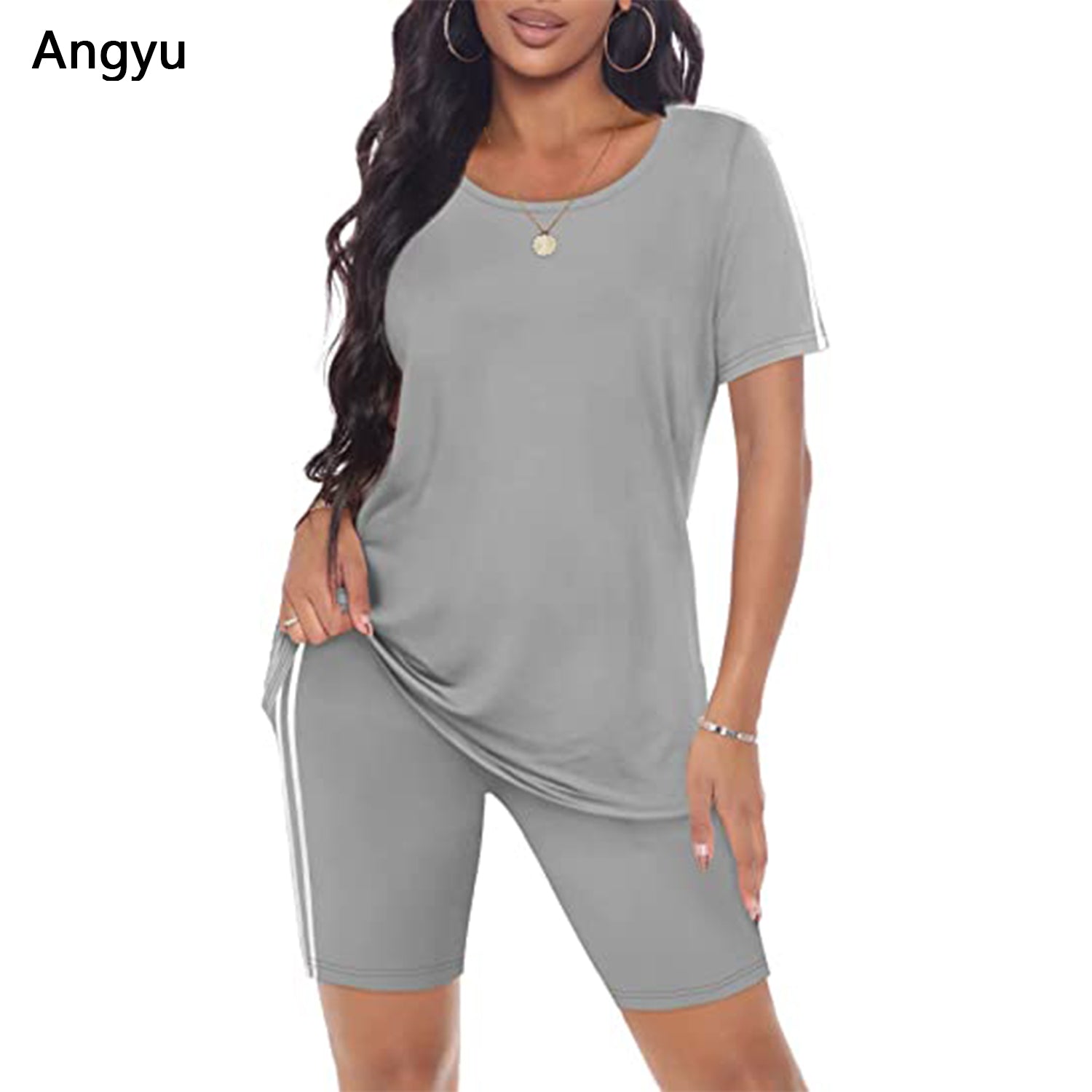 - Design: Short Sleeve Two Piece Outfits, Solid Color Workout Set, Soft and Comfortable Lounge Sets, Round Neck T Shirts+ High Waisted Biker Short Set with Stripes, Casual Track Suits.