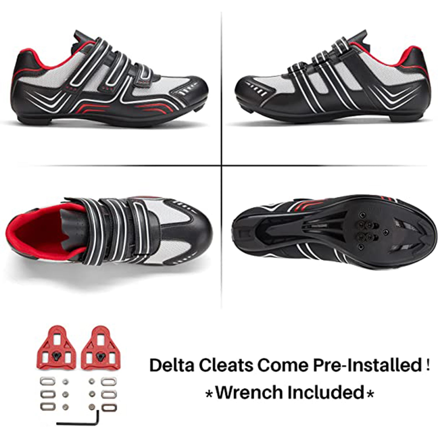 GREAT CYCLING PARTNER - The cycling shoes with nylon TPU sole which helps to increase grip while riding, and the pair of Delta cleats for indoor spin bikes such as Peloton bike pedal, a great cycling shoes which are compatible with Peloton Shimano SPD & Look ARC Delta.