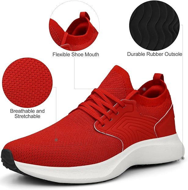 - Lightweight and Breathable:The upper of running shoes is made of highly elastic knitted fabric, which is light and comfty. The densely woven net builds a three-dimensional upper surface that comfortably wraps the ankle. The soft fabric will expand and expand with the feet, maximizing the breathability and keeping the feet dry all day