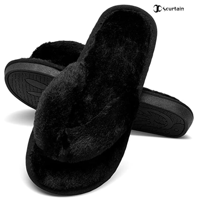 - FUZZY UPPER DESIGN: Thong slippers with an open-toe design makes a pair of cozy, chic, and fuzzy women’s slippers. Open-toe design makes them easy to wear on and off and great for all seasons.