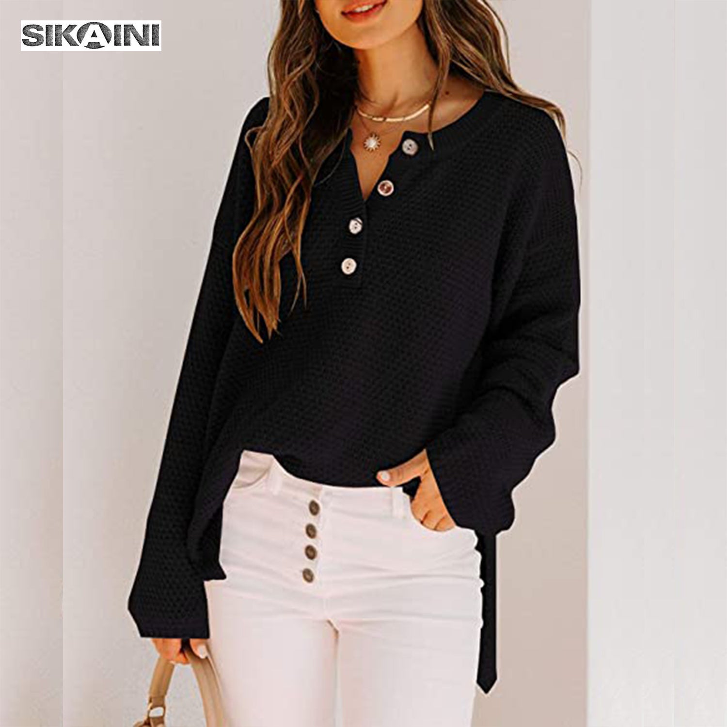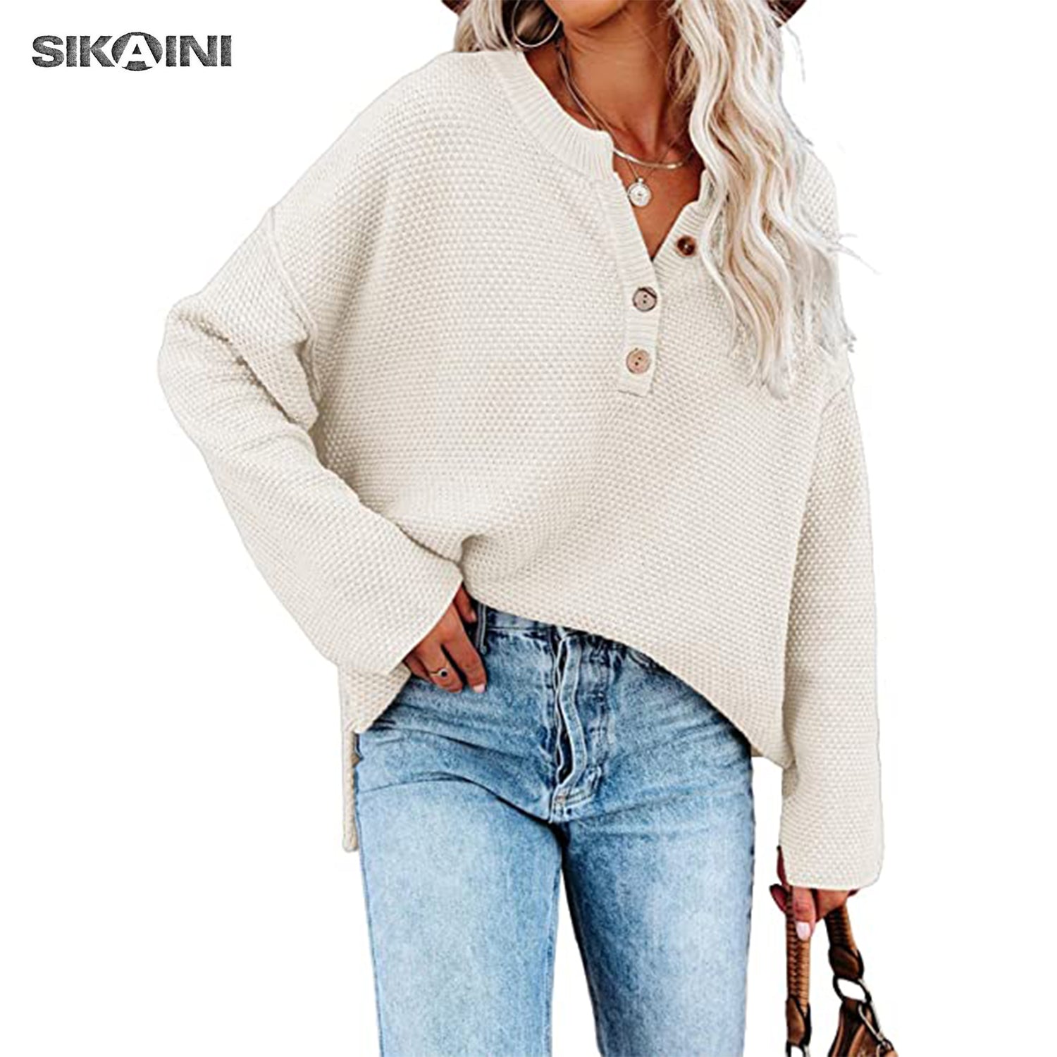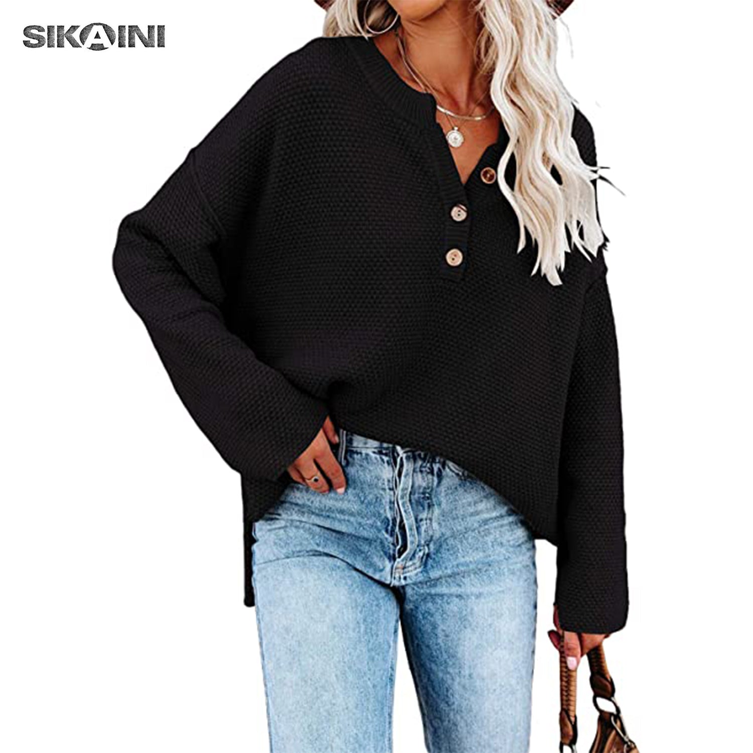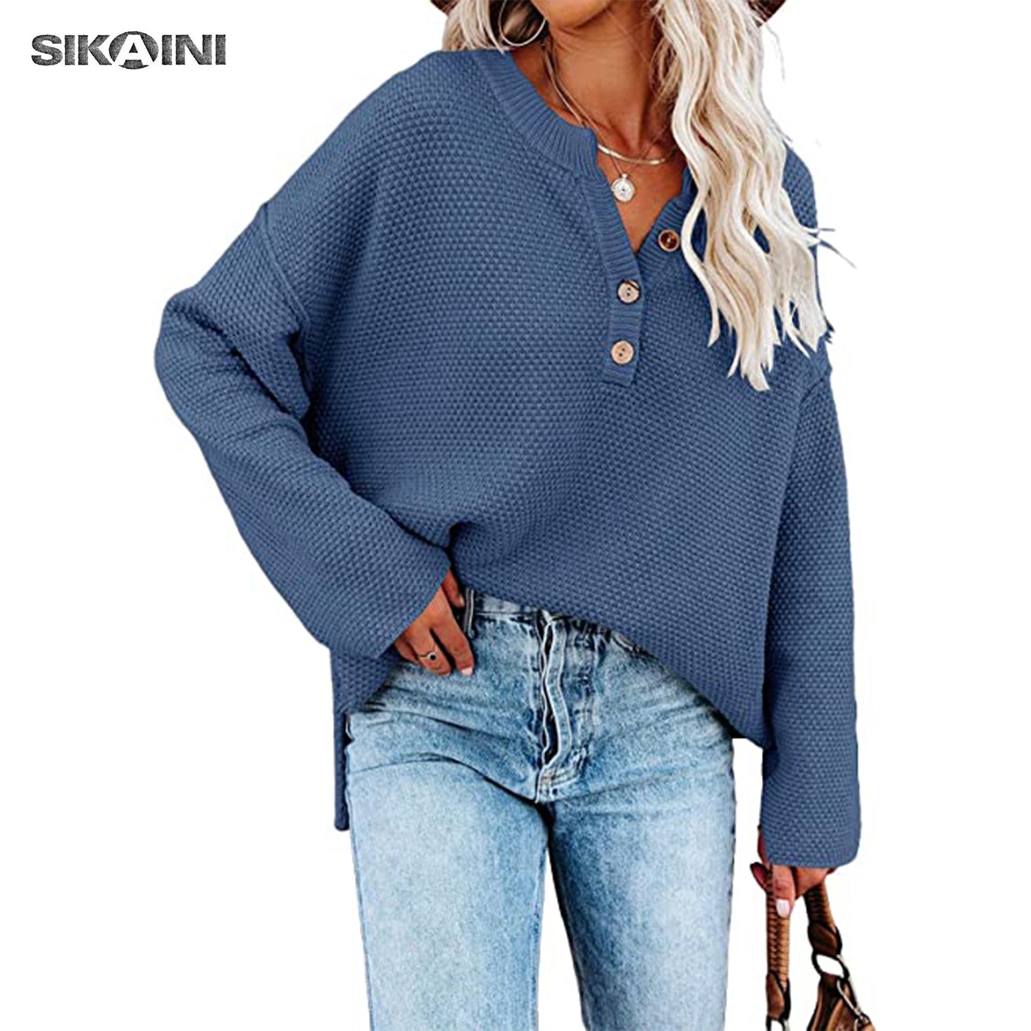 Easily pair this plain sweater with jeans, leggings, or skinnies to get a casual, modest and trendy look. The special button design makes this batwing sweater different and chic. Open more buttons if you want to get a sexy look.