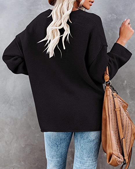 Oversized pullover sweaters features: v neck, crew neck, button-up, batwing tops for women, women henley tops, comfy, casual slouchy style, loose fit, side split, drop shoulder, solid plain color knit blouse.